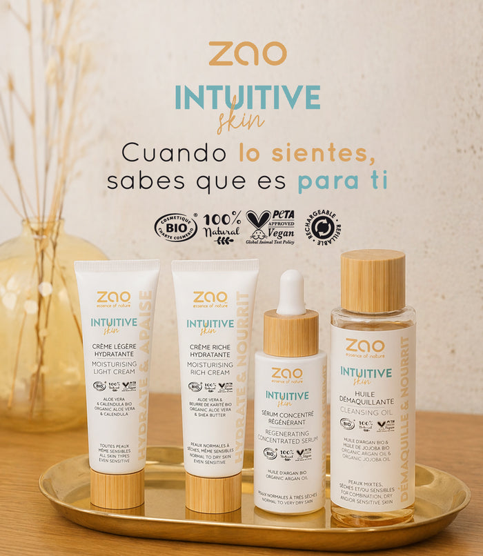 ORGÁNICO Y NATURAL: Sin derivados petroquímicos ni conservantes sintéticos, todos los productos ZAO cuentan con la certificación ecológica de Ecocert (sello Cosmébio) y son 100 % naturales.