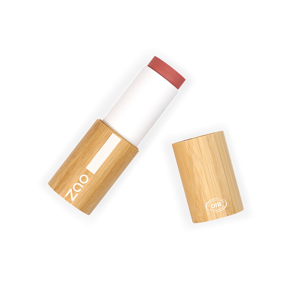 INGREDIENTS BLUSH STICK 843 (F1) : HEPTYL UNDECYLENATE, RICINUS COMMUNIS (CASTOR) SEED OIL*, MICA, SIMMONDSIA CHINENSIS (JOJOBA) SEED OIL*, COPERNICIA CERIFERA (CARNAUBA) WAX*, CI 77891 (TITANIUM DIOXIDE), HYDROXYSTEARIC/LINOLENIC/OLEIC POLYGLYCERIDES, HYDROGENATED JOJOBA OIL, SILICA, TRIBEHENIN, EUPHORBIA CERIFERA (CANDELILLA) CERA, PARFUM (FRAGRANCE), CI 77491 (IRON OXIDES), HELIANTHUS ANNUUS (SUNFLOWER) SEED OIL*, LECITHIN, TOCOPHEROL, BAMBUSA ARUNDINACEA (BAMBOO) STEM EXTRACT*, ASCORBYL PALMITATE, CITRIC ACID. *ingrédients issus de l’Agriculture Biologique.